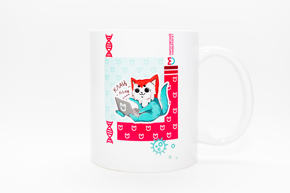 Кружка керамическая с логотипом и принтом, 330 мл (с котом)